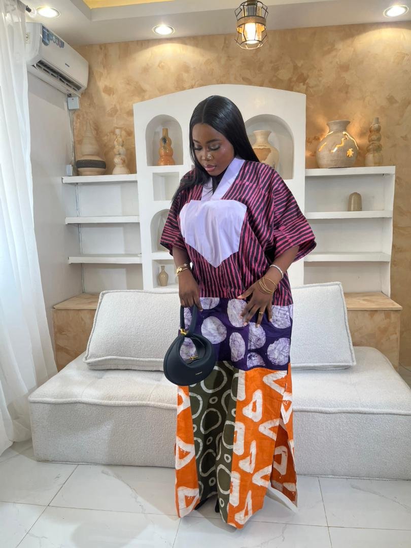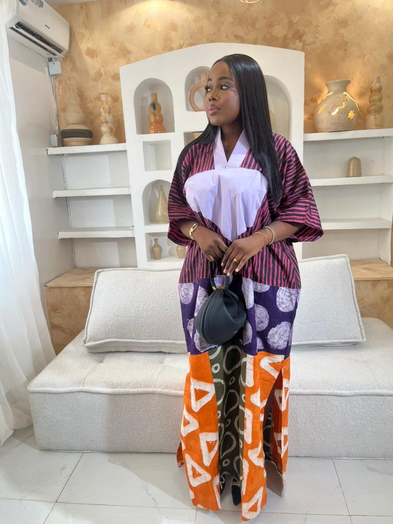 Step into effortless African elegance with the Toke Set, a stunning Adire color block outfit crafted from rich, high-quality Adire fabric.